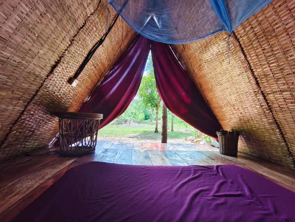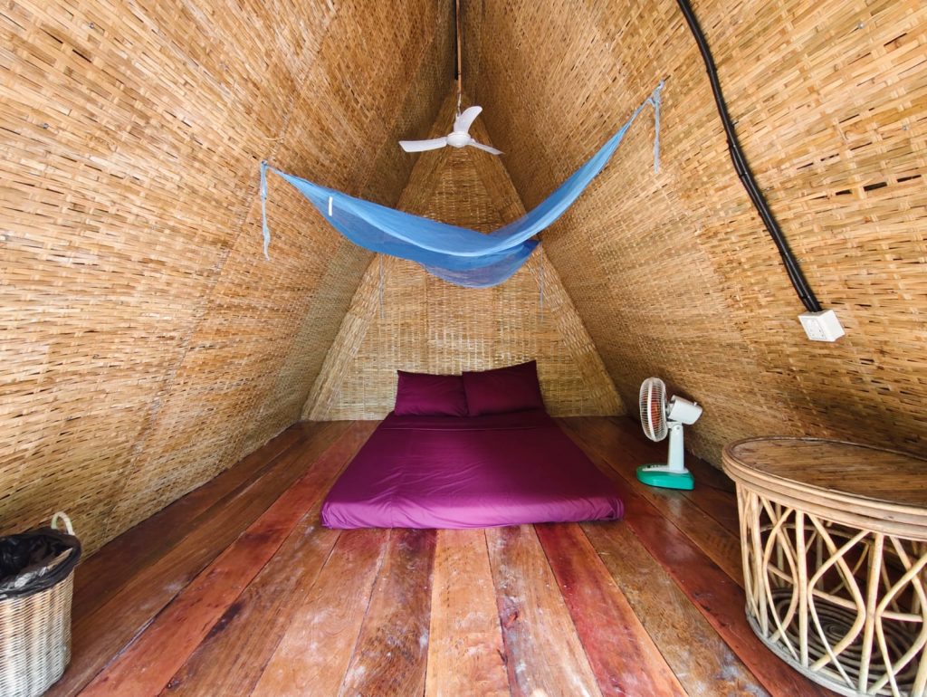 Our small huts offer simple and affordable comfort. They come with a mattress and pillow, including bed linen, as well as a metal chest for securely storing your belongings. Additionally, you’ll find a mosquito net, a fan, and an electrical outlet for your convenience.